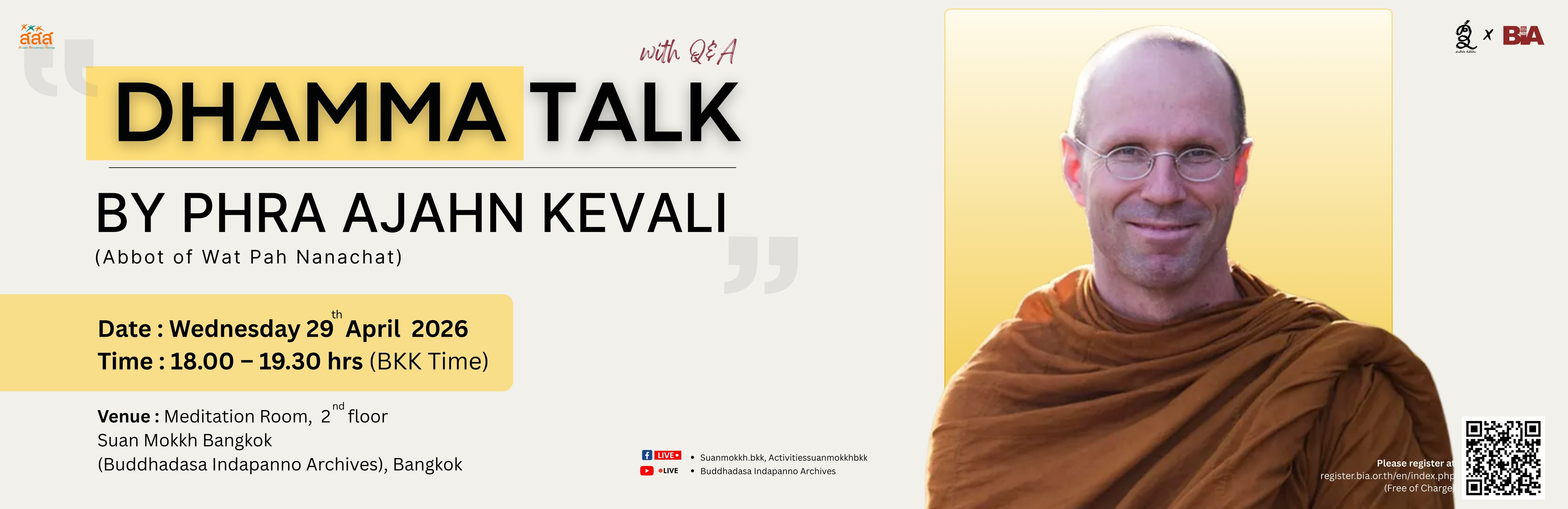 โดย กลุ่มอาสาคิลานธรรม ร่วมกับ หอจดหมายเหตุพุทธทาสอินทปัญโญ (เปิดลงทะเบียนวันศุกร์ที่ ๒๔ เมษายน ๒๕๖๙ เวลา ๐๗.๐๐ น.เป็นต้นไป)